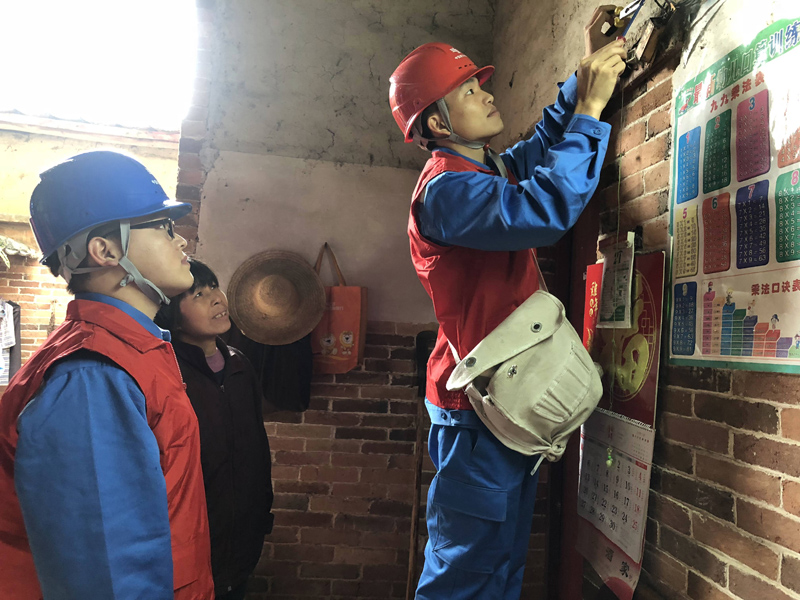 南方電網(wǎng)“高鋒愛心供電服務(wù)隊”志愿者為小婷家檢查用電設(shè)備。林丹丹 攝