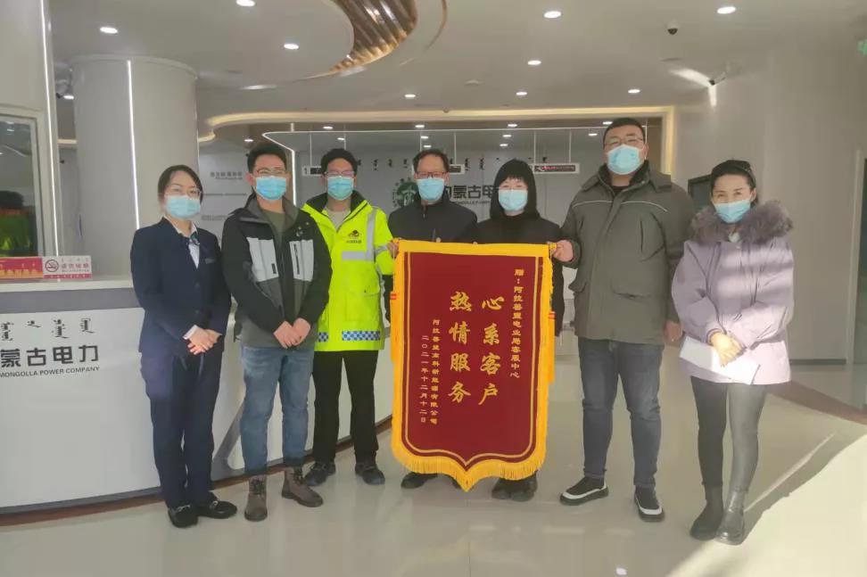 12月13日,內(nèi)蒙古高科新能源有限公司分散式風(fēng)力發(fā)電項目并網(wǎng)用電負(fù)責(zé)人將一面寫有“心系客戶 熱情服務(wù)”的錦旗送到客戶服務(wù)中心。