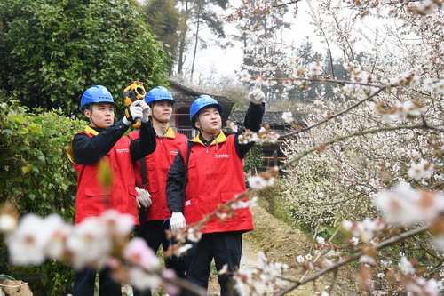 踏上蜿蜒的小路,穿過(guò)層層梅花林,國(guó)網(wǎng)福州供電公司共產(chǎn)黨員服務(wù)隊(duì)隊(duì)員們正輕車(chē)熟路地沿著高空銀線(xiàn)查看線(xiàn)路走廊,并對(duì)線(xiàn)路進(jìn)行日常的巡視測(cè)溫,以確保村落的供電可靠性,保障村民的生活用電需求。“我們?cè)谘惨曔^(guò)程中會(huì)重點(diǎn)防范鳥(niǎo)害和樹(shù)線(xiàn)矛盾帶來(lái)的季節(jié)性安全隱患。”隊(duì)員王蘇宇介紹道。