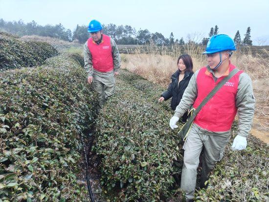 國網(wǎng)咸寧供電公司肖嶺供電所工作人員走進(jìn)肖嶺鄉(xiāng)泉陂村,對文定茶葉專業(yè)合作社茶葉基地“水肥一體化灌溉系統(tǒng)”的供電線路及用電設(shè)備進(jìn)行特巡特維,消除安全隱患,全力保障春茶生產(chǎn)用電。