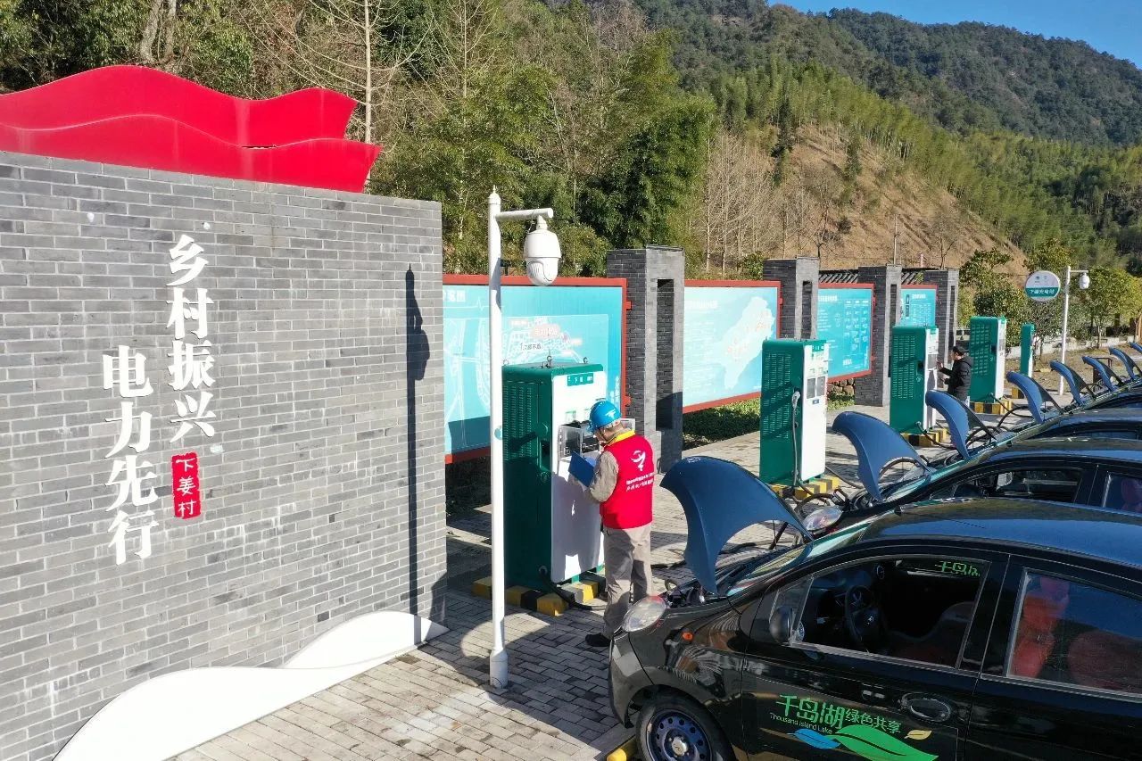 供電員工在杭州市下姜村檢查電動汽車充電設施
