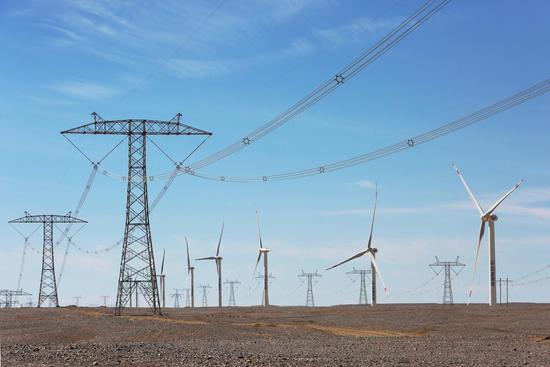 位于新疆哈密的±1100千伏昌吉—古泉特高壓直流輸電線路。