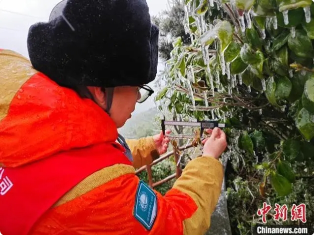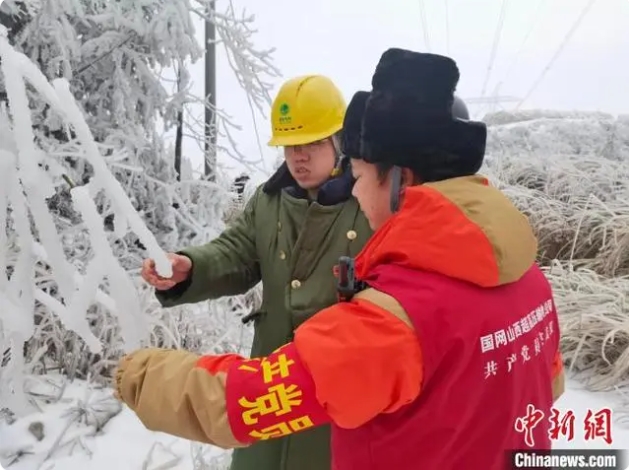 晉電援湘抗冰突擊隊隊員正在查看湖南電網(wǎng)線路周邊覆冰情況。國網(wǎng)山西省電力公司供圖