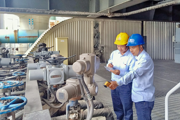 圖為該公司點檢人員正在進行6號鍋爐閥門內(nèi)漏情況排查
