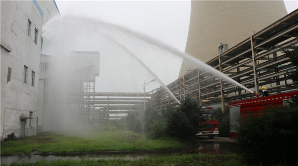 9時(shí),各參演單位集結(jié)完畢,副廠長宣布“大唐長山熱電廠輸煤系統(tǒng)火災(zāi)演練”開始。本次演練假想為燃運(yùn)分場運(yùn)行人員巡視檢查中發(fā)現(xiàn)1號(hào)機(jī)組輸煤4段尾部皮帶積粉燃燒,輸煤皮帶冒煙著火,運(yùn)行人員發(fā)現(xiàn)火情后立即匯報(bào)集控班長并就地使用滅火器進(jìn)行撲救,集控班長接到報(bào)告后立即撥打火警電話告知火災(zāi)地點(diǎn),同時(shí)報(bào)告值長和燃運(yùn)分場主任,并組織集控值班員趕往火災(zāi)地點(diǎn)進(jìn)行撲救。值長立即向演練總指揮報(bào)告,并按要求做好機(jī)組調(diào)整工作??傊笓]下達(dá)啟動(dòng)輸煤皮帶火災(zāi)應(yīng)急預(yù)案,成立現(xiàn)場指揮部,全力撲救火情,保障人身安全和機(jī)組穩(wěn)定運(yùn)行。值長迅速通過生產(chǎn)溝通群向各應(yīng)急組發(fā)布應(yīng)急預(yù)案啟動(dòng)命令,告知火情信息。廠消防隊(duì)和長山化廠消防車到達(dá)火災(zāi)現(xiàn)場,消防戰(zhàn)士開始撲救火災(zāi),9時(shí)11分火情得到控制,廠消防隊(duì)隊(duì)長報(bào)告輸煤皮帶明火已經(jīng)撲滅,消防人員正在清理現(xiàn)場,防止死灰復(fù)燃,至此演練結(jié)束。李云龍宣布應(yīng)急響應(yīng)結(jié)束,關(guān)閉應(yīng)急預(yù)案。