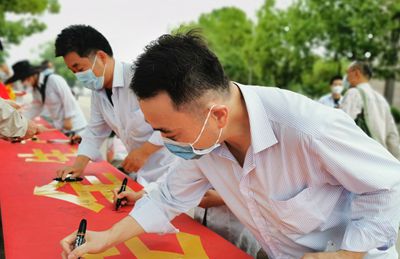 7點30分以后,陸續(xù)進場上班的干部職工沐浴著初夏明媚的陽光,感受著安全穩(wěn)定的和諧氛圍,在寫有“安全生產(chǎn)月”簽名活動,在寫有“遵守安全生產(chǎn)法 當好第一責任人”紅色橫幅上,鄭重簽下自己的名字,快速瀏覽宣傳手冊,以這種方式作出嚴肅承諾,嚴格落實安全生產(chǎn)規(guī)章制度,堅決當好自己崗位的“第一責任人”,切實守護個人安全,共同保障企業(yè)安全。