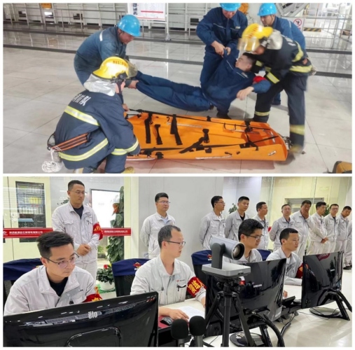 “演練開(kāi)始”,8月5日,隨著演練總指揮的一聲令下,陜投集團(tuán)趙石畔煤電2號(hào)鍋爐水冷壁爆破綜合事故應(yīng)急演練正式拉開(kāi)序幕,各個(gè)崗位人員立即進(jìn)入演練狀態(tài)。