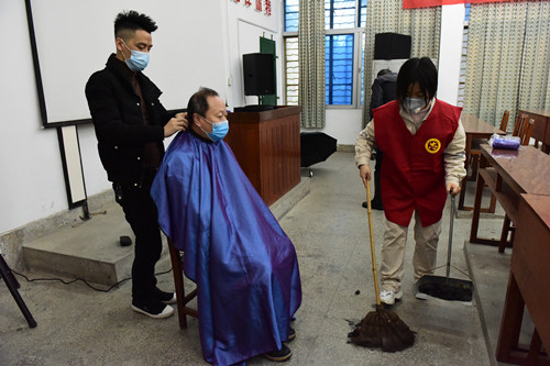 本次“愛心抗疫情”學(xué)雷鋒系列志愿活動包含“發(fā)短情長”免費(fèi)理發(fā)、公共場所打掃和消毒、關(guān)愛獨(dú)居老人三項(xiàng)內(nèi)容。