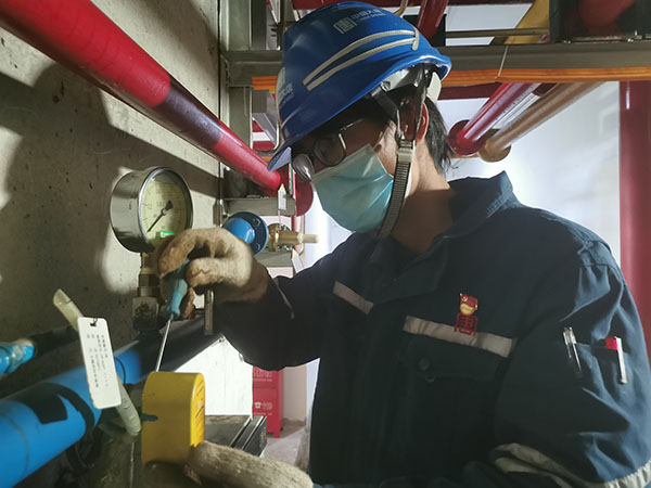 黨員靳旭進(jìn)行自動(dòng)化原件故障處理