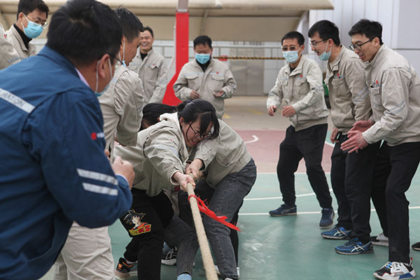 活動由《五人六足跑》《合作共贏》《黨史知識我知道》《紅歌接力》《拔河大賽》等5個項目組成。在《五人六足跑》《合作共贏》項目中,將各參賽隊員的默契表現(xiàn)展現(xiàn)的淋漓盡致,他們齊心協(xié)力、團結(jié)一致,充分展示了廣大職工充滿活力、拼搏向上的精神面貌?!饵h史知識我知道》《紅歌接力》項目將整場活動推向高潮,尤為突出的是廣大職工掌握黨史知識的扎實度,每遇一題,各參賽隊反應(yīng)迅速,競相展開黨史知識作答,正確率高、回答速度快,比賽中難分伯仲。在《拔河大賽》項目中,各隊都顯示出最強的比賽陣容,只見隊員們緊握長繩,卯足了勁拼命往后拉,哨子聲、吶喊聲此起彼伏,現(xiàn)場氣氛異常激烈。