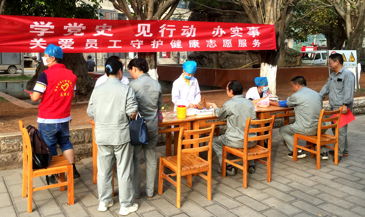 中國電力網(wǎng)訊 黨史學習教育開展以來,云南開遠公司設備檢修黨支部聚焦“我為群眾辦實事”實踐活動,5月10日上午,該支部醫(yī)務班醫(yī)護人員在食堂門口舉辦“關愛員工守護健康”志愿服務活動,用暖心服務提升員工幸福指數(shù)。