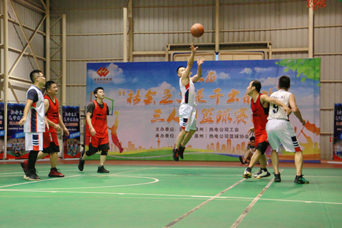 中國電力網(wǎng)訊 為豐富員工業(yè)余生活,提高員工身體素質,增進各外委單位及各部門間溝通與交流,國能(泉州)熱電有限公司開展第二屆“社會主義是干出來的”三人制籃球賽,此次比賽吸引來自機關、設備生技、運行、外委單位共12隊70人參加,11月15日,隨著一聲哨響,在該公司文體館正式吹起比賽號角。