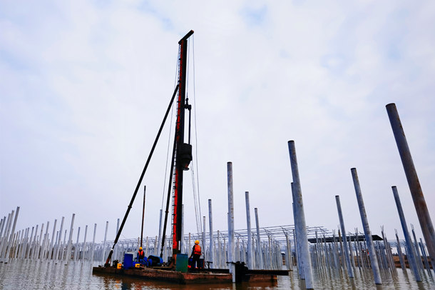 中國電力網(wǎng)訊 連日來,江西贛東北出現(xiàn)大范圍雨雪天氣,但在上饒市余干縣江埠鄉(xiāng)180兆瓦、大溪鄉(xiāng)150兆瓦漁光互補(bǔ)光伏發(fā)電建設(shè)工地上,卻是一片繁忙景象,工人們正加班加點(diǎn)、緊張有序的保障光伏電站實(shí)現(xiàn)早日全容量并網(wǎng)。