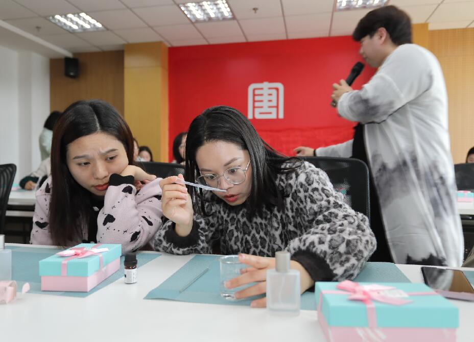 在活動現(xiàn)場,來自專業(yè)的老師向大家講解了關(guān)于香水的知識,并帶領(lǐng)大家試香,選擇自己喜歡的香型。在詳細講解并示范了香水調(diào)制的方法與步驟后,大家紛紛迫不及待地開始嘗試,制作自己喜歡的專屬香水。最后將成品放入精美的香水瓶中,就像一件件藝術(shù)品,令人賞心悅目。在基層項目部,盡管很多女員工第一次制作點心,但個個心慧手巧。通過烘烤加工,現(xiàn)場制作的糕酥新鮮出爐,香飄四溢,讓人垂涎欲滴,香味俱全,絲毫不亞于專賣店的成品蛋糕。