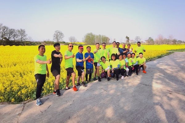 初春的下午3點(diǎn),陽光明媚,微風(fēng)習(xí)習(xí),澧水風(fēng)光帶南岸健身步道的風(fēng)景令人心曠神怡。此刻,石電跑團(tuán)協(xié)會30余名路跑愛好者及家屬統(tǒng)一著裝,在進(jìn)行跑前熱身運(yùn)動。一聲令下,跑友們紛紛開跑。起跑點(diǎn)為江邊循泵房,沿途經(jīng)澧水南岸風(fēng)光帶和鄉(xiāng)道旁的油菜花海,全程約8公里。路跑隊伍中,既有多年跑齡的馬拉松運(yùn)動愛好者,也不乏路跑新手。“今天準(zhǔn)備跑幾圈?” “加油噢!”跑步過程中,每逢遇上新加入隊伍的跑友,馬拉松運(yùn)動愛好者們或輕聲問候或?yàn)閷Ψ郊佑凸臍狻8信苡延X得不過癮,這么好的天氣美景,繼續(xù)“加餐”四公里。