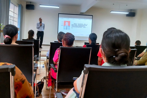 活動(dòng)在《?;丶铱纯础犯杪曋欣_了序幕。大家一起聆聽了開遠(yuǎn)市第五屆道德模范普玉成長(zhǎng)年如一日照顧癱瘓母親孝行事跡,懂得了什么是“百善孝為先”,感受到道德的力量、榜樣的力量,接受了一次道德洗禮。齊聲誦讀《孟子·梁惠王上》中的經(jīng)典名句,從經(jīng)典詩(shī)文中,進(jìn)一步感悟孝老愛親的意義。大家還就如何有效解決盡職履責(zé)與盡孝之間的矛盾,做到“忠孝兩全”進(jìn)行了心得交流,活動(dòng)最后,將鮮花送到道德模范普玉成手中,向道德模范表達(dá)由衷敬意。