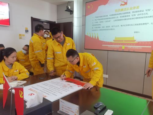 共作“廉”承諾。為進一步增強黨員干部廉潔從業(yè)意識,由紀(jì)檢委員吳紅濤領(lǐng)誓,參加人員進行了廉潔承諾:“一、嚴(yán)格遵守國家法律法規(guī)、華潤集團和華潤電力規(guī)章制度,堅決拒收拒送“紅包”。二、帶頭嚴(yán)格教育管理親屬和身邊其他人員,堅決抵制收送“紅包”的不正之風(fēng)……。”。隨后,參加人員在黨員廉潔承諾書上簽名,以此來表達(dá)在新時代趕考路上,對廉潔從業(yè)的決心和信心。