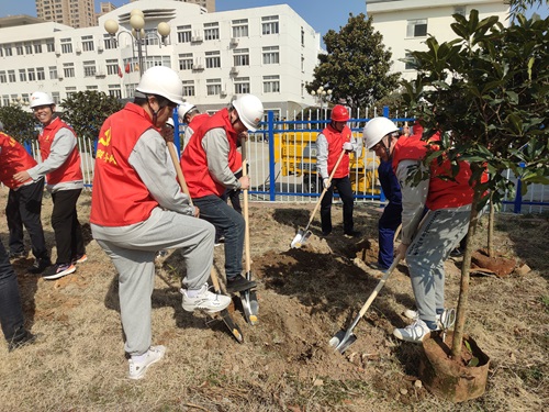 活動(dòng)中,大家?guī)兹艘唤M分工協(xié)作,干勁十足,揮鋤挖坑、扶苗填土、澆水灌溉,忙的不亦樂乎。經(jīng)過大家的共同努力,一棵棵新栽種的綠植在和煦的春風(fēng)中昂然挺立,為廠區(qū)環(huán)境帶來一抹生機(jī)。