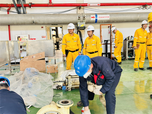 檢修現(xiàn)場,龍勁強(qiáng)對透空機(jī)檢修項(xiàng)目的方案措施、安健環(huán)管控、人員組織情況等重點(diǎn)工作進(jìn)行了全面檢查,從項(xiàng)目現(xiàn)場安全文明施工、技術(shù)質(zhì)量管理等進(jìn)行了指導(dǎo),結(jié)合現(xiàn)場實(shí)際強(qiáng)調(diào):一是要加強(qiáng)黨建引領(lǐng),增強(qiáng)責(zé)任擔(dān)當(dāng),充分發(fā)揮黨支部的戰(zhàn)斗堡壘作用;二是加強(qiáng)檢修現(xiàn)場安健環(huán)管理,強(qiáng)化安全職責(zé)落實(shí);三是要提升質(zhì)量管理,高質(zhì)量完成透空機(jī)的檢修工作,全面提升透空機(jī)系統(tǒng)的經(jīng)濟(jì)運(yùn)行和節(jié)能降耗水平。
