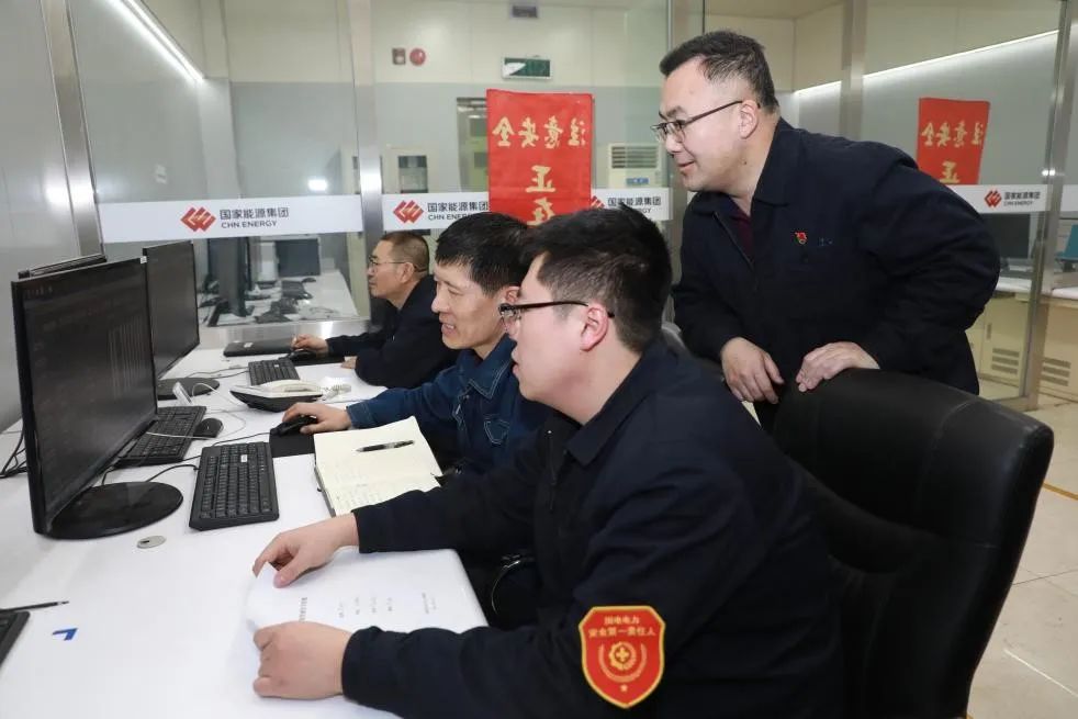 圖為電氣黨支部核對啟備變設(shè)備定值