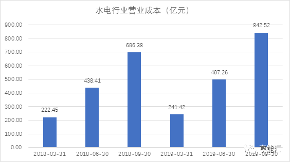 受季節(jié)性水流的影響,第三季度水電出力放緩,第三季度發(fā)電量同比增長增速降低,增速為2.5%。第一季度和第二季度增速均保持在在十幾個百分點(diǎn)的增速。在行業(yè)收入方面,第三季度水電行業(yè)凈利潤為414.21億元,其中歸屬于母公司的凈利潤為365.47億元,歸屬母公司凈利潤同比增長率為11.6%。前三季度水電行業(yè)營業(yè)成本為842.52億元,前三季度營業(yè)成本同比增長21%。