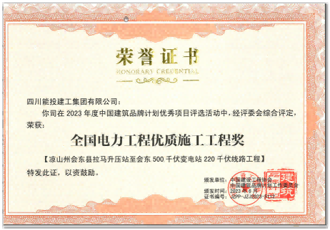 近日,在2023(第七屆)中國建設(shè)行業(yè)品牌發(fā)展峰會暨2023(第十三屆)中國建設(shè)行業(yè)創(chuàng)新發(fā)展峰會的頒獎典禮上,四川能投建工集團被評為“全國優(yōu)秀施工企業(yè)”,該公司承建的“涼山州會東縣拉馬升壓站至?xí)|500千伏變電站220千伏線路工程”獲得“全國電力工程優(yōu)質(zhì)施工工程獎”榮譽稱號。