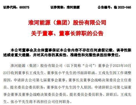 10月24日,淮河能源公告,董事長王戎先生、董事張小平、職工代表監(jiān)事王亮先生提出書面辭職,辭職后,王戎、張小平將不再擔(dān)任公司任何職務(wù)。公開資料顯示,王戎,1967年出生,現(xiàn)年56歲。于2019年8月起任淮河能源黨委書記,董事長,此前曾在淮礦現(xiàn)代物流有限公司任董事長,黨委書記。