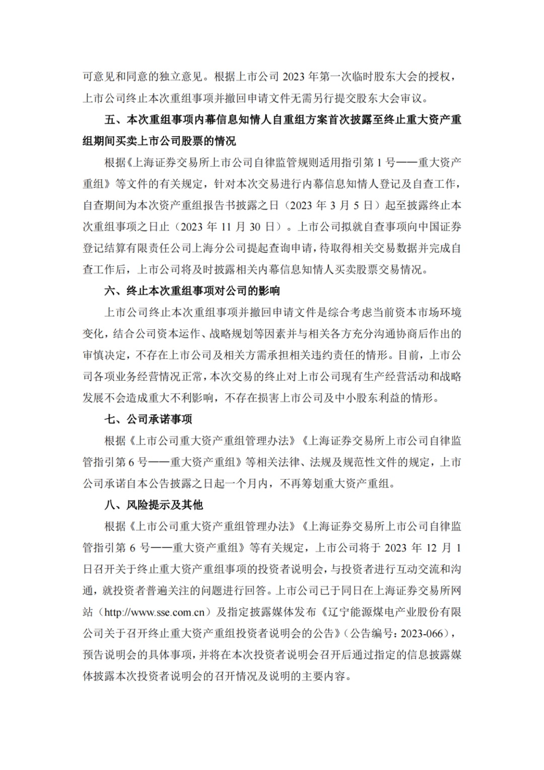 11月30日,遼寧能源發(fā)布關于終止重大資產重組的公告。