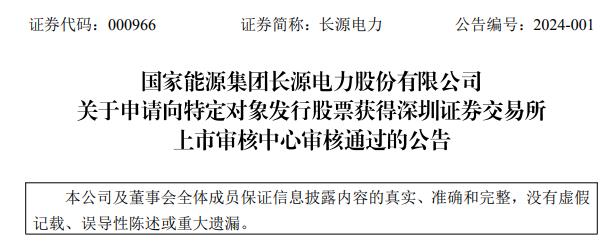 國(guó)家能源集團(tuán)長(zhǎng)源電力股份有限公司(簡(jiǎn)稱“長(zhǎng)源電力”)昨晚發(fā)布關(guān)于申請(qǐng)向特定對(duì)象發(fā)行股票獲得深圳證券交易所上市審核中心審核通過(guò)的公告。