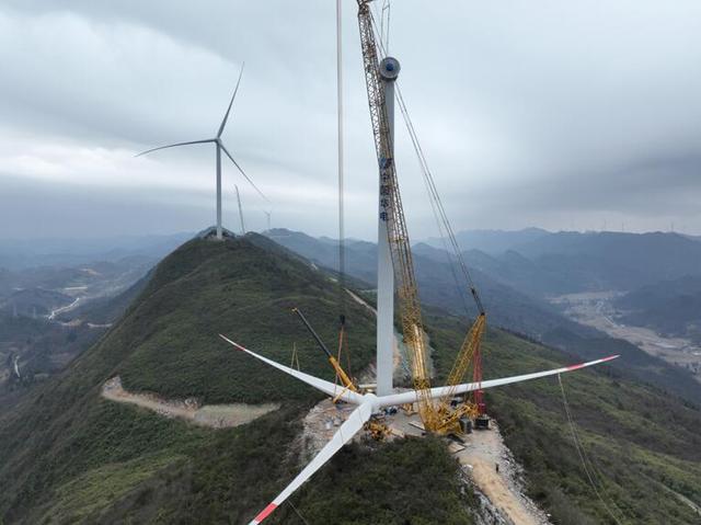 華電奉節(jié)龍家坪項(xiàng)目風(fēng)機(jī)葉片吊裝 華電重慶公司供圖