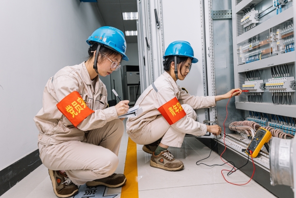 圖為黨員突擊隊正在測量DEH柜控制電源