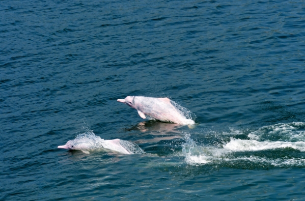 中華白海豚在陽江核電海域嬉戲