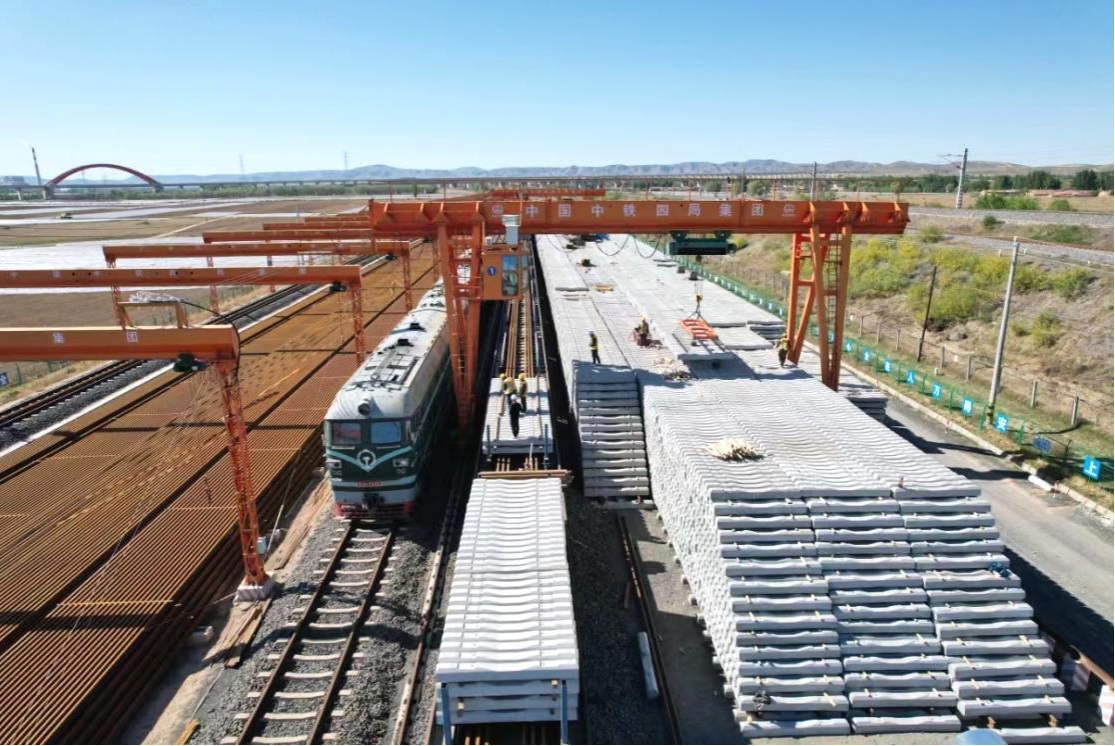 軌枕專列在大準(zhǔn)線丹洲營鋪軌基地卸車