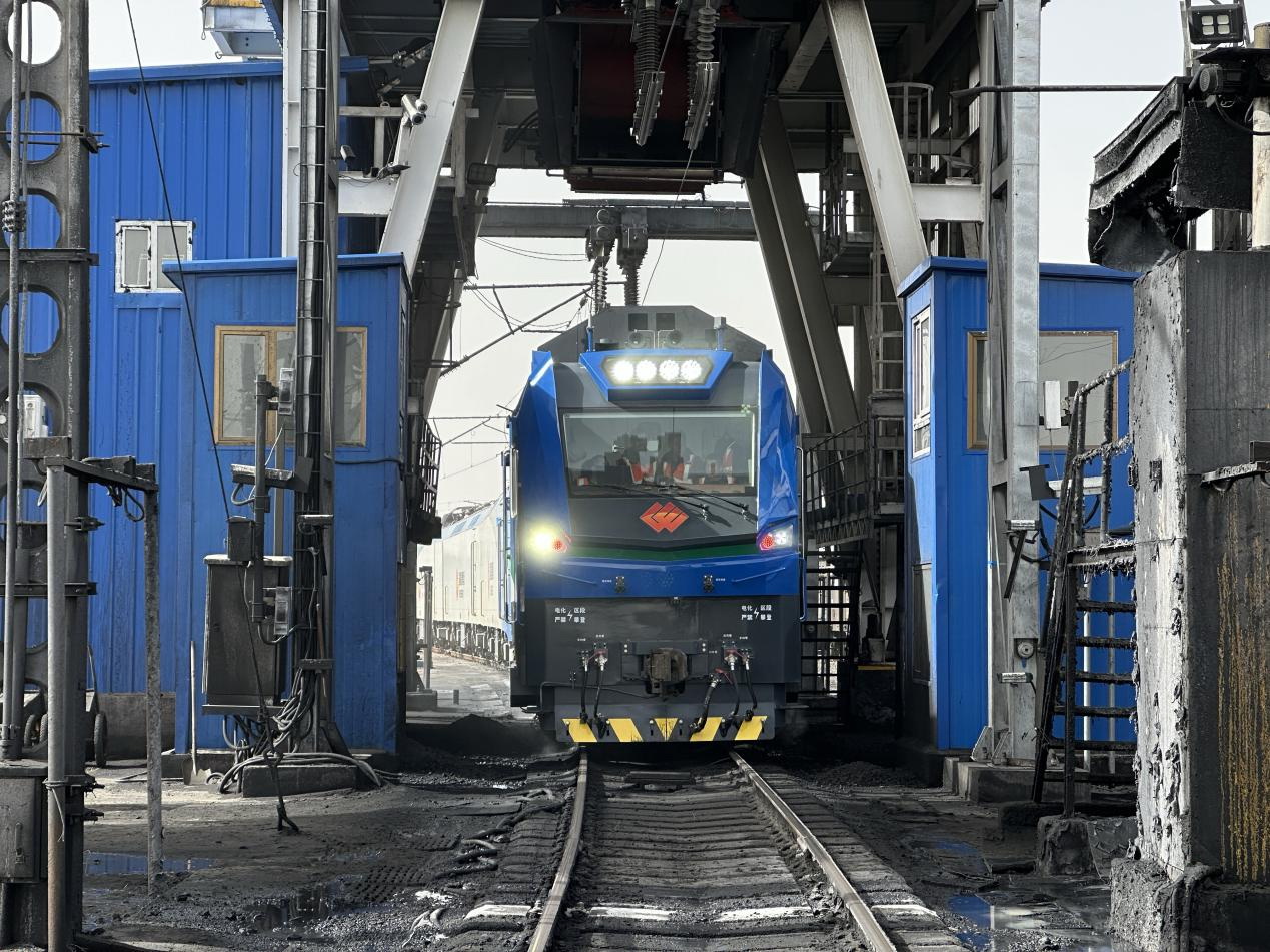 氫能源動力調(diào)車機(jī)車在四道柳站進(jìn)行低恒速裝煤作業(yè)