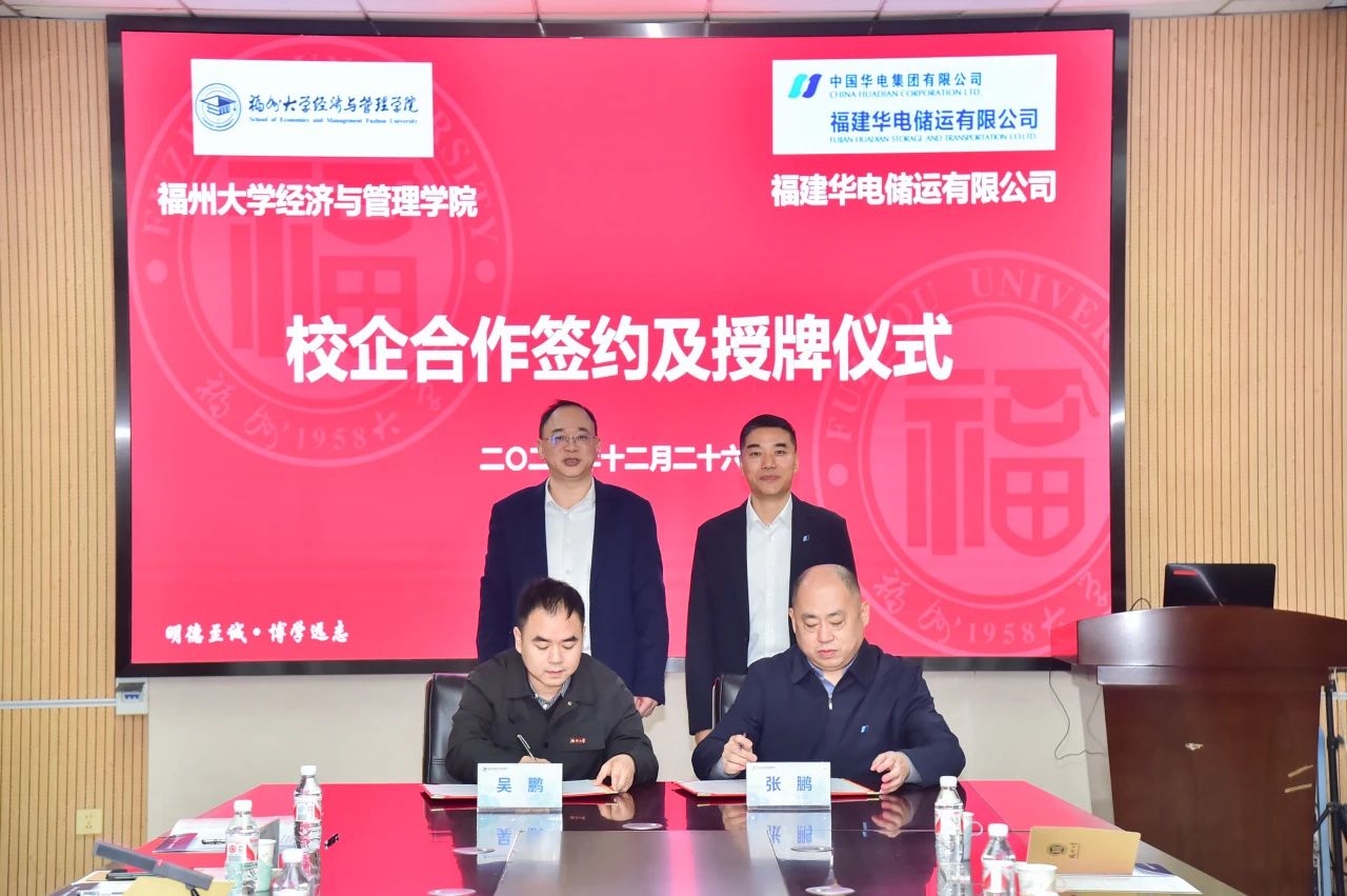 12月26日,華電煤業(yè)黨委副書記、工會主席劉書德到福州大學經(jīng)濟與管理學院調(diào)研,就進一步深化產(chǎn)教融合校企合作進行座談交流,并見證福建儲運、福州大學經(jīng)濟與管理學院校企合作簽約授牌儀式。福州大學經(jīng)濟與管理學院黨委書記石炳文出席座談。