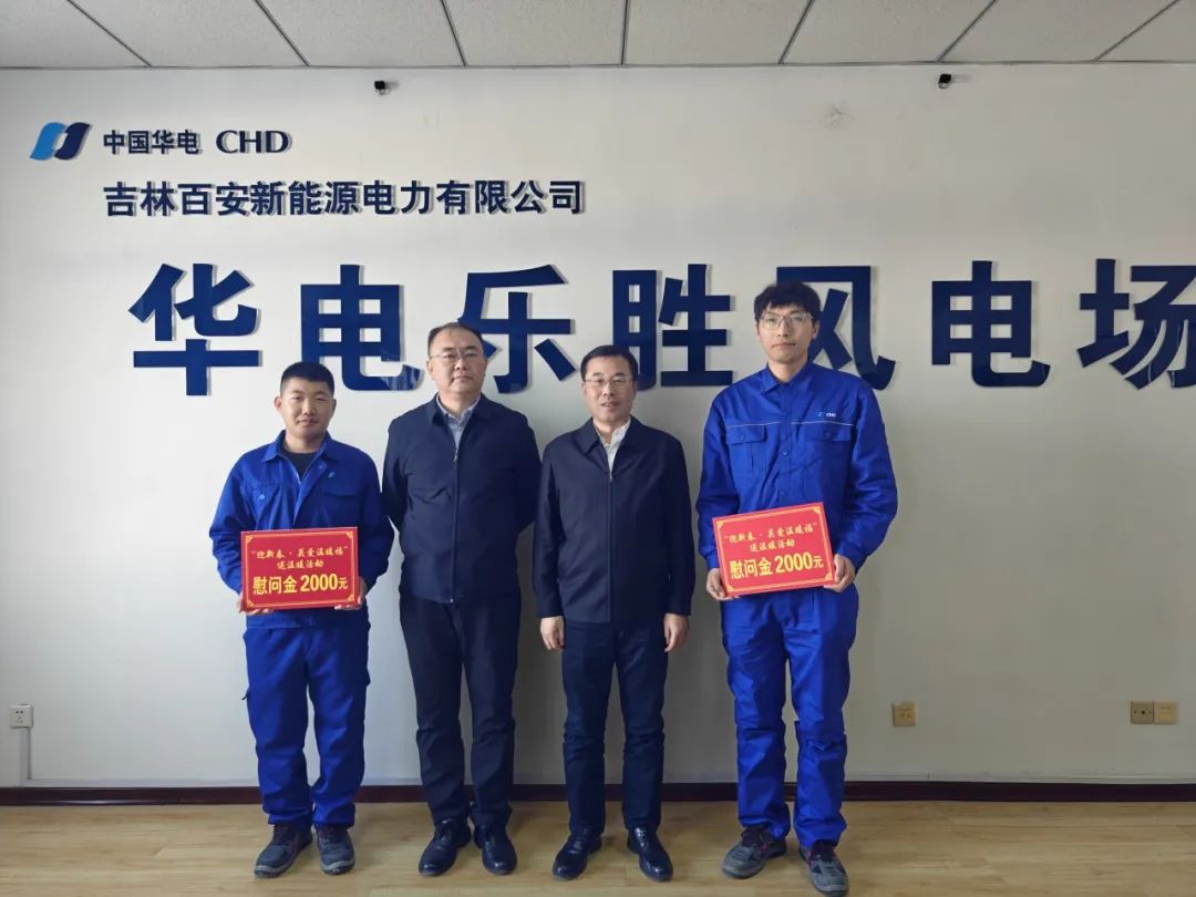 寒冬送暖,歲末傳情。1月22日,在新春佳節(jié)即將來臨之際,華電吉林公司黨委書記、執(zhí)行董事孫毅到樂勝風(fēng)場走訪慰問困難黨員及堅(jiān)守崗位的生產(chǎn)一線員工,送去溫暖關(guān)懷和新春祝福,并開展節(jié)前安全檢查。公司黨委委員、副總經(jīng)理孫浩參加走訪慰問。
