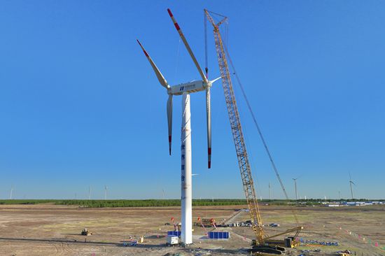 5月13日,隨著前風(fēng)輪與機(jī)艙實(shí)現(xiàn)精準(zhǔn)對(duì)接,華能自主研制的世界首臺(tái)串列式雙風(fēng)輪風(fēng)電機(jī)組“賽瑞號(hào)”在華能吉林通榆風(fēng)電場順利完成吊裝,進(jìn)入整機(jī)運(yùn)行示范階段。