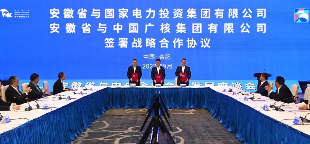 9月19日,安徽省與中央企業(yè)合作發(fā)展座談會(huì)在合肥舉行。在安徽省委書記韓俊,省委副書記、省長(zhǎng)王清憲,國(guó)務(wù)院國(guó)資委黨委委員、副主任王宏志共同見(jiàn)證下,國(guó)家電投黨組成員、副總經(jīng)理劉豐與安徽省委常委、副省長(zhǎng)張紅文代表雙方簽署戰(zhàn)略合作協(xié)議。