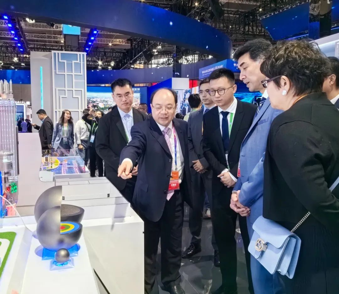 華能石島灣高溫氣冷堆核電站示范工程此次入選中國館,并在以“人與自然和諧共生的現(xiàn)代化——綠色發(fā)展新機(jī)遇”為題的“建設(shè)美麗中國”區(qū)域展出,通過實(shí)體模型和視頻互動(dòng)方式展示了發(fā)電原理、建設(shè)歷程及多用途推廣。示范工程裝機(jī)容量20萬千瓦,具有第四代反應(yīng)堆主要技術(shù)特征,先后攻克了多項(xiàng)世界性、行業(yè)性關(guān)鍵技術(shù),設(shè)備國產(chǎn)化率達(dá)到93.4%,創(chuàng)造了許多“世界第一”“中國第一”,是助力我國四代先進(jìn)核能世界領(lǐng)先的標(biāo)志性工程、引領(lǐng)性工程。