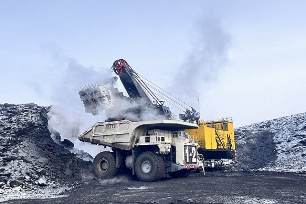 圖為極寒天氣下雁寶能源220噸運(yùn)輸大車正在作業(yè)面與電鏟配合裝車