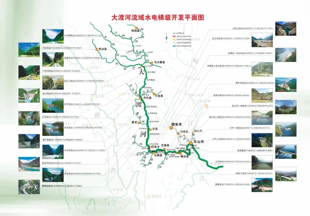 大渡河流域是國(guó)家能源集團(tuán)水電開發(fā)主要區(qū)域,在干流投產(chǎn)裝機(jī)1133.8萬千瓦,投產(chǎn)水電總裝機(jī)占四川省水電統(tǒng)調(diào)裝機(jī)的四分之一,在建水電裝機(jī)352萬千瓦,是清潔能源開發(fā)重要基地。