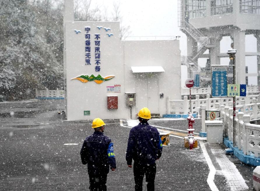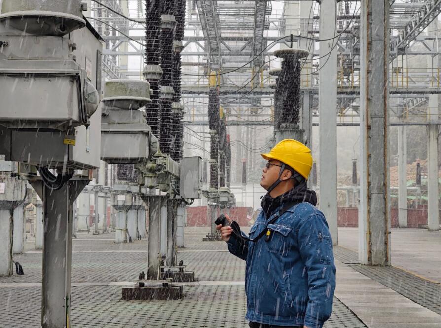 暴雪突至,浙江烏溪江公司運(yùn)行人員在湖南鎮(zhèn)電站220KV開關(guān)站加強(qiáng)室外巡檢。