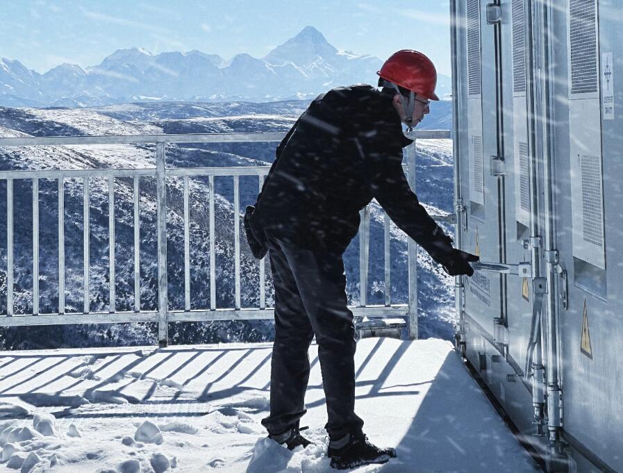 地處四川甘孜州海拔4500米高原上的雅江紅星光伏項(xiàng)目現(xiàn)場(chǎng),運(yùn)維人員正踩著厚厚的積雪,在對(duì)發(fā)電設(shè)備進(jìn)行仔細(xì)檢查。