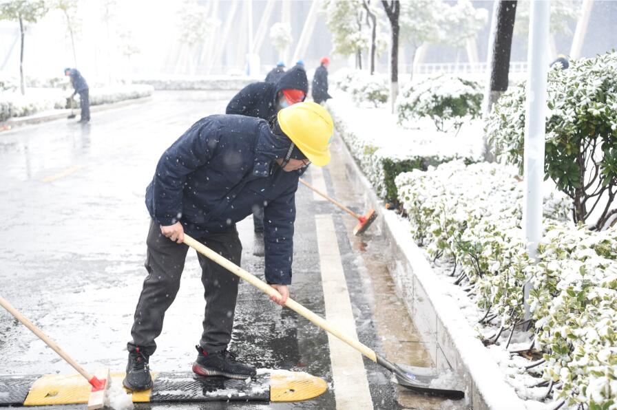 湖北江陵公司員工正在清除廠區(qū)積雪