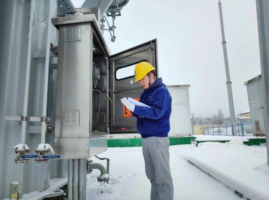四川公司有序開展高海拔區(qū)域防覆冰特巡,充分利用遠(yuǎn)程監(jiān)控系統(tǒng)等跟蹤分析充油充氣設(shè)備在線數(shù)據(jù),深度掌握設(shè)備運(yùn)行趨勢(shì)。在嘎斯都一期光伏電站現(xiàn)場(chǎng),最低氣溫達(dá)到零下20度,該公司增派人員加大對(duì)集電線路、主變等重點(diǎn)設(shè)備區(qū)域的運(yùn)行維護(hù)和安全保障,持續(xù)對(duì)進(jìn)場(chǎng)道路每日撒鹽除冰,全力保障寒潮天氣下電力可靠供應(yīng)。