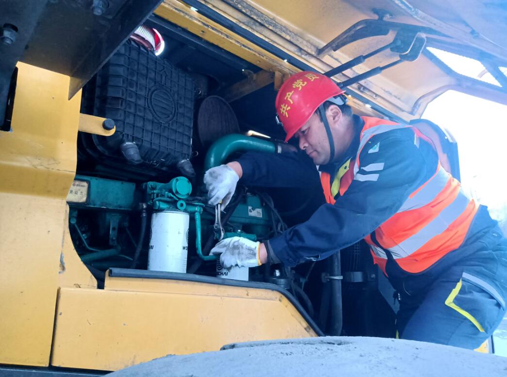 中煤新疆公司所屬犁能煤炭公司機電維修隊維修工阿布來提·吾什爾頂著嚴(yán)寒深入生產(chǎn)作業(yè)現(xiàn)場,及時排除鏟車設(shè)備故障。