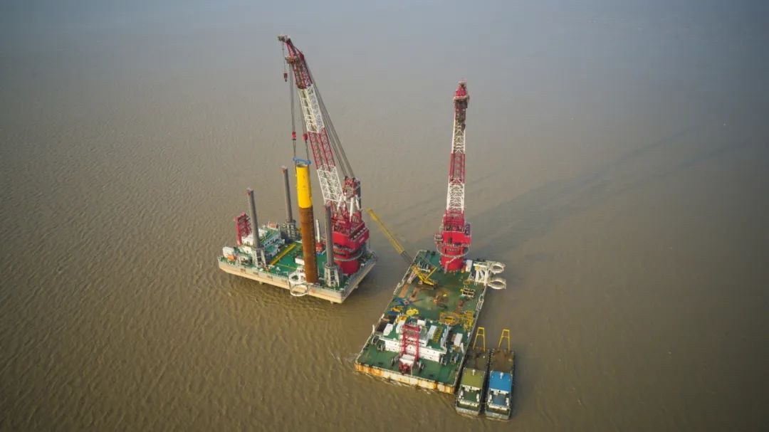 龍源振華壹號是國內(nèi)首創(chuàng)的集吊樁、打樁、安裝為一體的海上風(fēng)電安裝平臺,配備了國內(nèi)首創(chuàng)的長臂架800噸電驅(qū)動全回轉(zhuǎn)起重機,其最大起吊高度為110米;在國內(nèi)首次配備了800千焦打擊能量的大直徑液壓沖擊錘,可實現(xiàn)4.5-5.1米大直徑單樁打樁功能,同時自主開發(fā)了與其配套的糾偏與扶正系統(tǒng),可實現(xiàn)X、Y方向±1米范圍的糾偏,確保打樁垂直度在千分之三以內(nèi)。