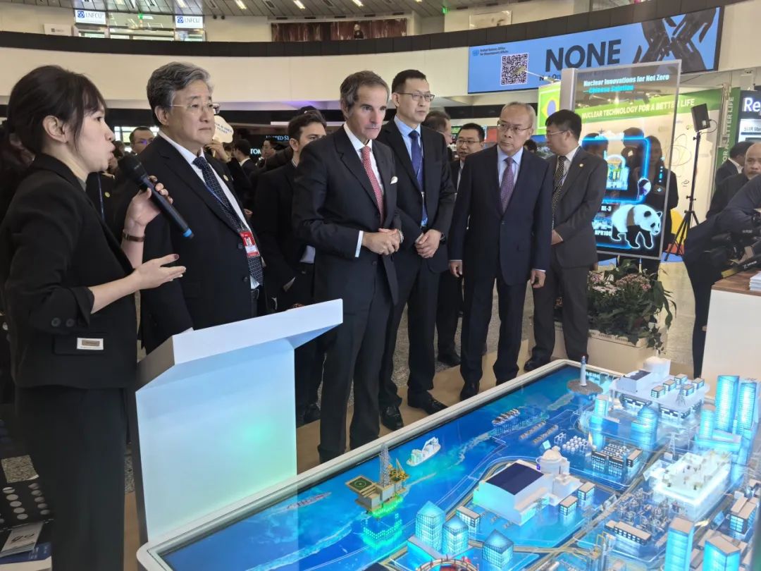 由中核集團(tuán)承辦的中國(guó)加入國(guó)際原子能機(jī)構(gòu)40周年“核創(chuàng)未來(lái)、核美家園”主題展臺(tái)吸引了全球同行的關(guān)注。在“核創(chuàng)未來(lái)、核美家園”主題展臺(tái)前,余劍鋒接待了國(guó)際原子能機(jī)構(gòu)總干事格羅西、國(guó)家核安全局局長(zhǎng)董保同、中國(guó)國(guó)家原子能機(jī)構(gòu)副主任劉敬、中國(guó)常駐國(guó)際原子能機(jī)構(gòu)代表李松大使等重要嘉賓,體驗(yàn)中國(guó)傳統(tǒng)非遺拓印,共同在紙扇上拓印出“CHINA & IAEA 40 YEARS”“核美家園”。還有來(lái)自法國(guó)、沙特、約旦、土耳其、塞爾維亞、泰國(guó)、剛果等多個(gè)國(guó)家重要嘉賓參觀展臺(tái)。