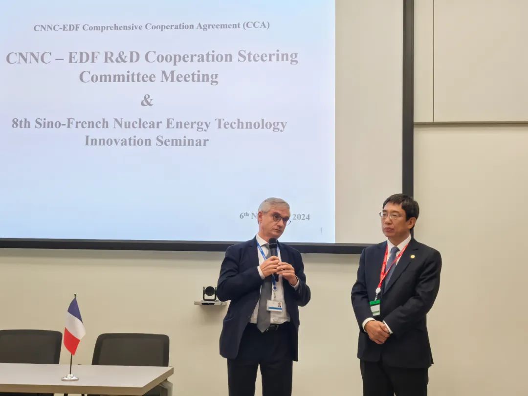 11月6日,第八屆中法核能技術(shù)創(chuàng)新研討會(huì)暨中核集團(tuán)-法國電力集團(tuán)全面合作協(xié)議(CCA)研發(fā)指導(dǎo)委員會(huì)在巴黎成功召開,中核集團(tuán)副總經(jīng)理辛鋒,法國電力集團(tuán)(EDF)高級執(zhí)行副總裁、首席技術(shù)官、研發(fā)部總裁Bernard SALHA出席會(huì)議并致辭。