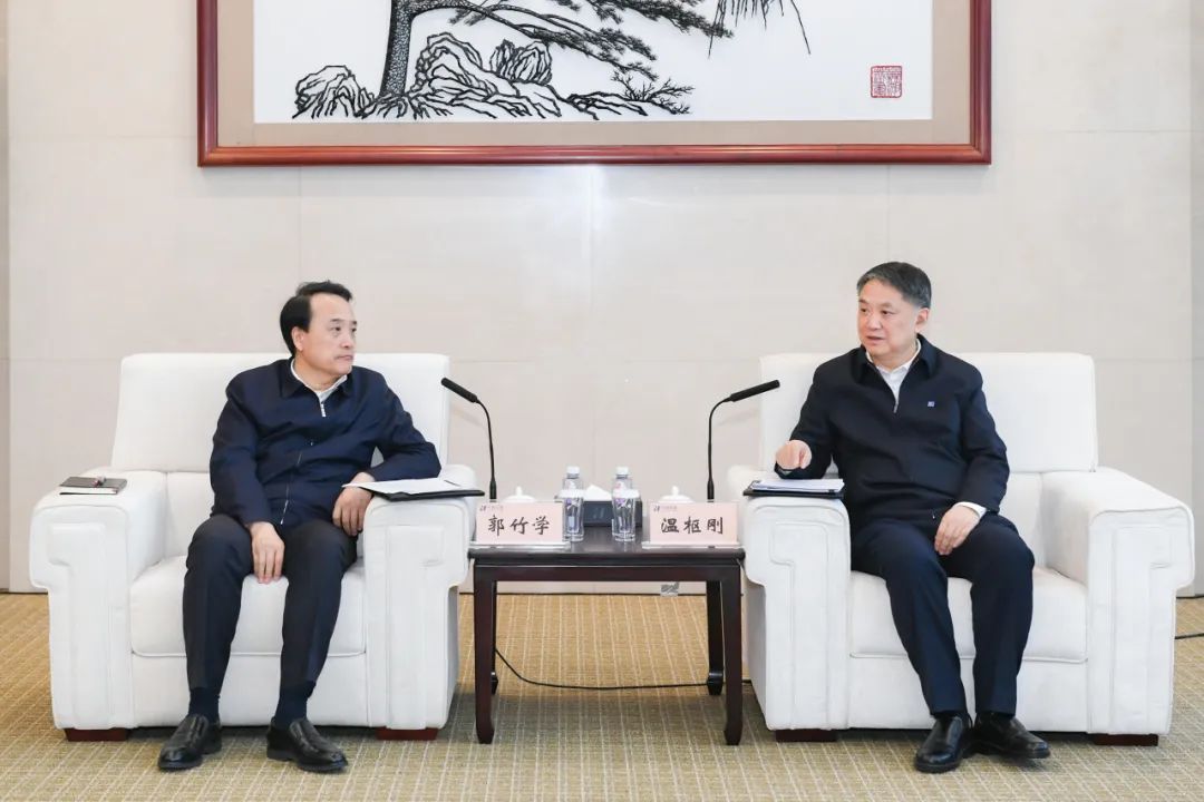 溫樞剛對郭竹學(xué)一行的到來表示歡迎,感謝國鐵集團多年來對中國華能的關(guān)心與支持,并介紹了華能經(jīng)營發(fā)展、產(chǎn)業(yè)布局等情況。